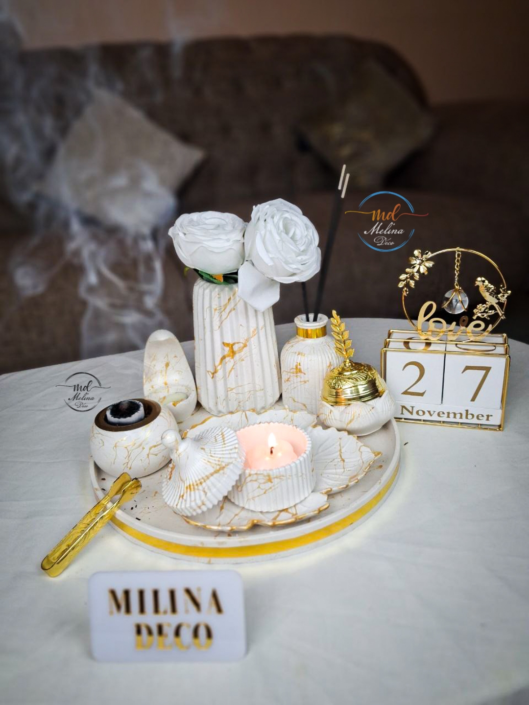 🤍 طقم فاخر باللون ا الابيض دهبي – 8 قطع أنيقة